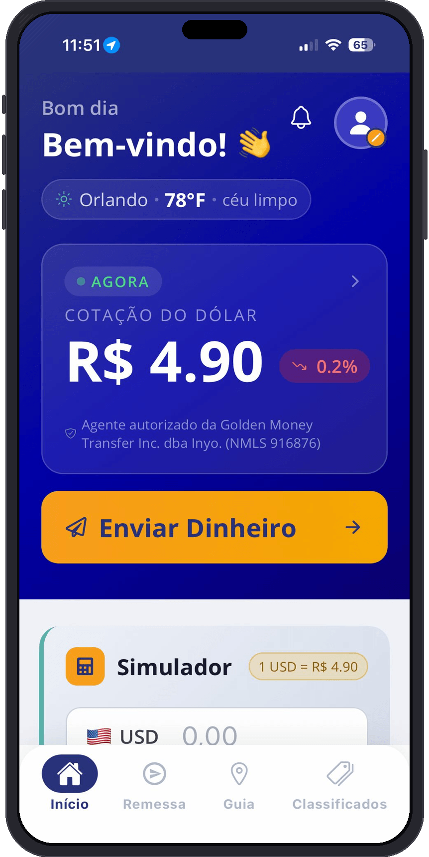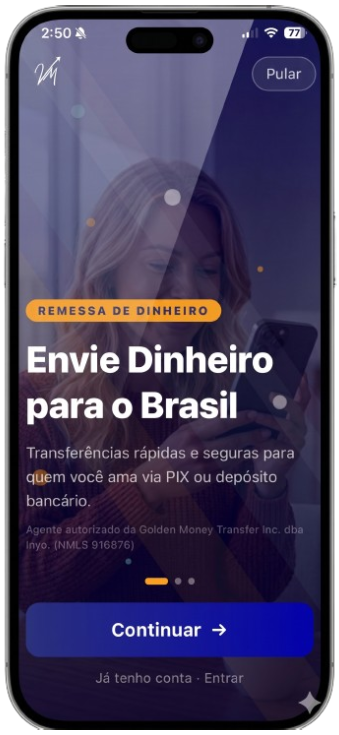 Envie sua remessa para o Brasil de forma rápida e segura através da Golden Money Transfer Inc. dba Inyo (NMLS 916876).